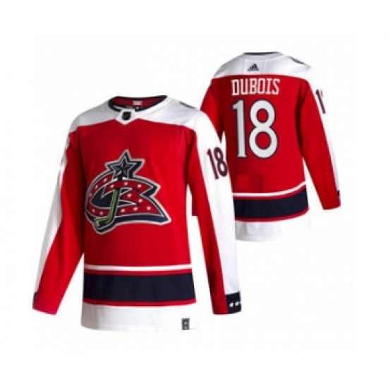 >Men's Columbus Blue Jackets #18 Pierre-Luc Dubois Red 2020-21 Reverse Retro Alternate Hockey Jersey