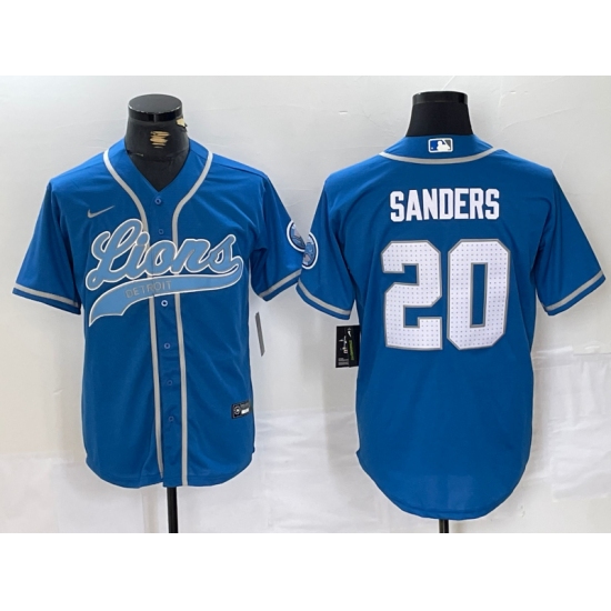 Men's Detroit Lions #20 Barry Sanders Blue Cool Base Stitched Baseball Jersey