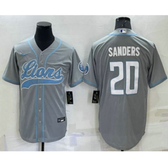 Men's Detroit Lions #20 Barry Sanders Grey Stitched MLB Cool Base Nike Baseball Jersey