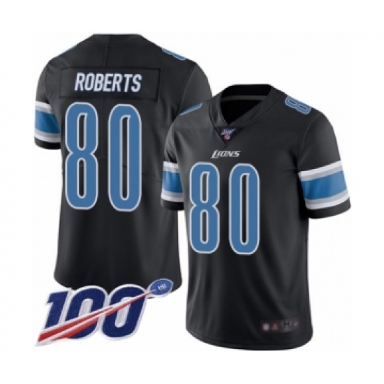 >Men's Detroit Lions #80 Michael Roberts Limited Black Rush Vapor Untouchable 100th Season Football Jersey