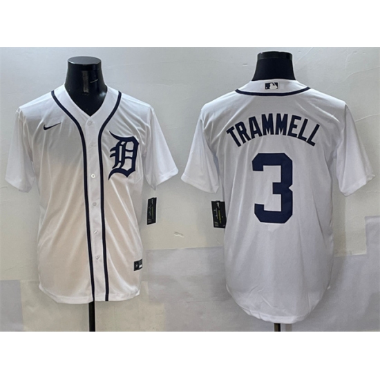>Men's Detroit Tigers #3 Alan Trammell White Cool Base Stitched Baseball Jersey