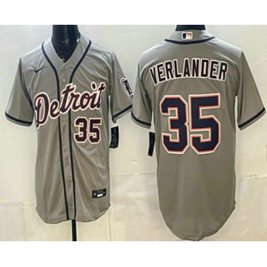 Men's Detroit Tigers #35 Justin Verlander Gray 2026 Road Stitched Baseball Jersey