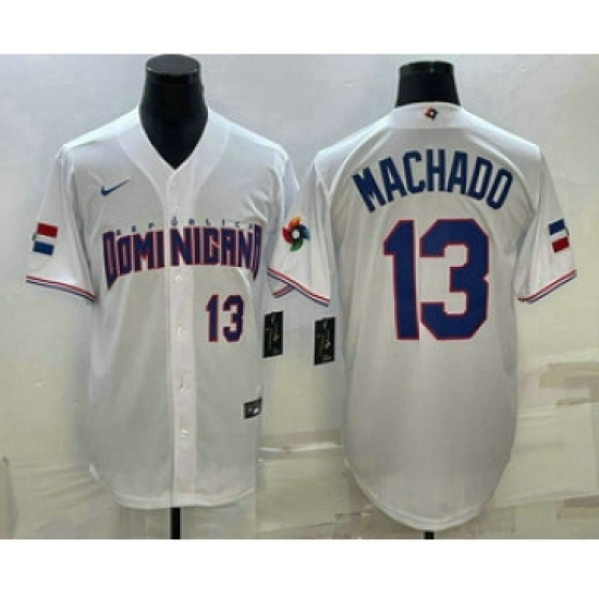 Men's Dominican Republic Baseball #13 Manny Machado 2023 White World Baseball Classic Stitched Jersey