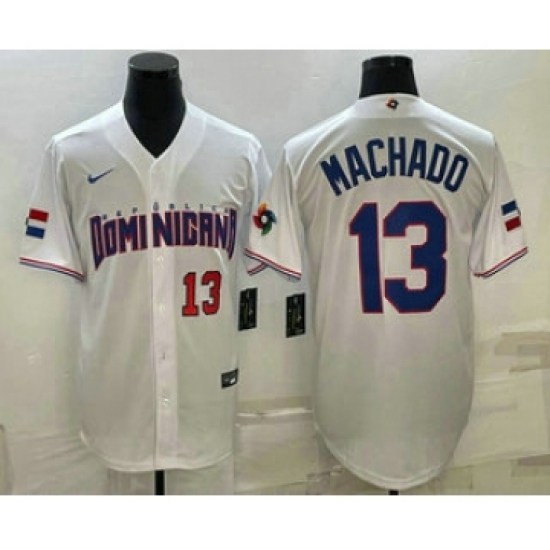 Men's Dominican Republic Baseball #13 Manny Machado Number 2023 White World Baseball Classic Stitched Jerseys