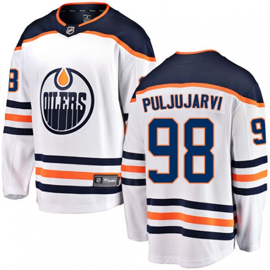 Home>NHL>Edmonton Oilers>Jesse Puljujarvi>Men's Edmonton Oilers #98 Jesse Puljujarvi Fanatics Branded White Away Breakaway NHL Jersey