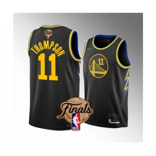 >Men's Golden State Warriors #11 Klay Thompson 2022 Black NBA Finals Stitched Jersey