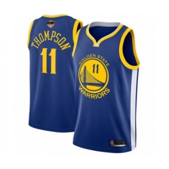 >Men's Golden State Warriors #11 Klay Thompson Swingman Royal Blue 2019 Basketball Finals Bound Basketball Jersey - Icon Edition