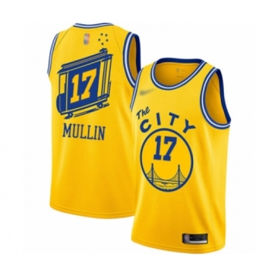 Men's Golden State Warriors #17 Chris Mullin Authentic Gold Hardwood Classics Basketball Jersey - The City Classic Edition