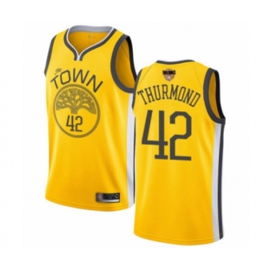>Men's Golden State Warriors #42 Nate Thurmond Yellow Swingman 2019 Basketball Finals Bound Jersey - Earned Edition