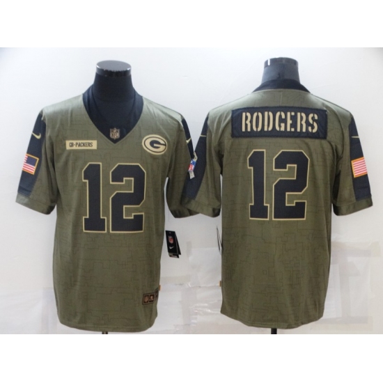 >Men's Green Bay Packers #12 Aaron Rodgers Nike Olive 2021 Salute To Service Limited Player Jersey