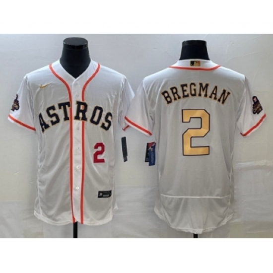 Men's Houston Astros #2 Alex Bregman White 2022 World Series Champions Flex Base Stitched Baseball Jersey