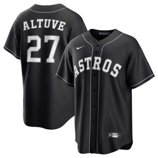 >Men's Houston Astros #27 Jose Altuve Black Lights Out Limited Stitched Baseball Jersey