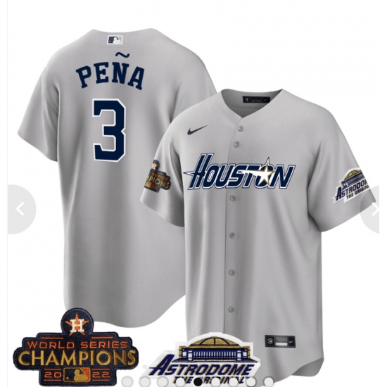 Men's Houston Astros #3 Jeremy Pena 2023 Grey Serise Champions Base Stitched Jerseys