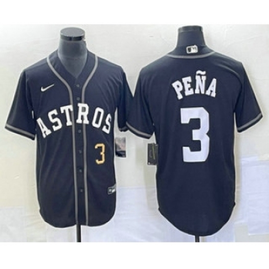 >Men's Houston Astros #3 Jeremy Pena Number Black Cool Base Stitched Baseball Jersey
