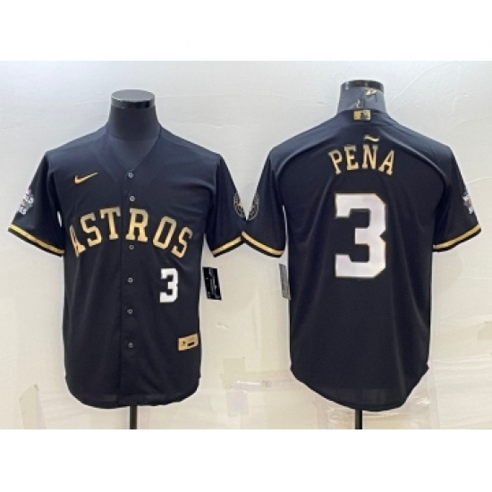 >Men's Houston Astros #3 Jeremy Pena Number Black Gold 2022 World Series Stitched Baseball Jersey