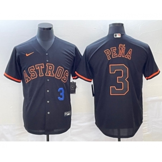 Men's Houston Astros #3 Jeremy Pena Number Lights Out Black Fashion Stitched MLB Cool Base Nike Jersey1