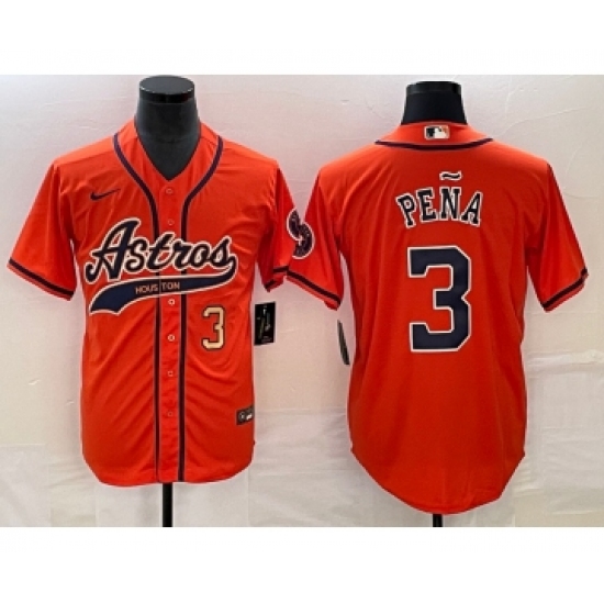Men's Houston Astros #3 Jeremy Pena Number Orange Cool Base Stitched Baseball Jersey