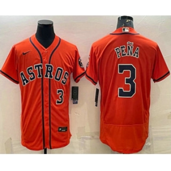 >Men's Houston Astros #3 Jeremy Pena Number Orange Stitched MLB Flex Base Nike Jersey