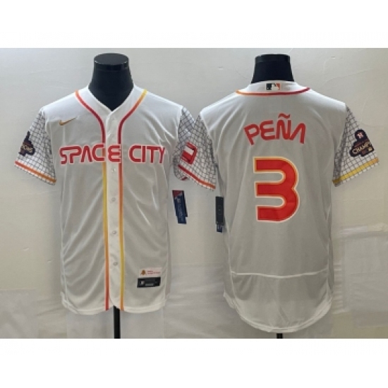 >Men's Houston Astros #3 Jeremy Pena Number White 2023 City Connect Flex Base Stitched Jersey3