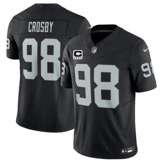 >Men's Las Vegas Raiders #98 Maxx Crosby Black 2025 F.U.S.E. With 4-Star C Vapor Limited Football Stitched Jersey