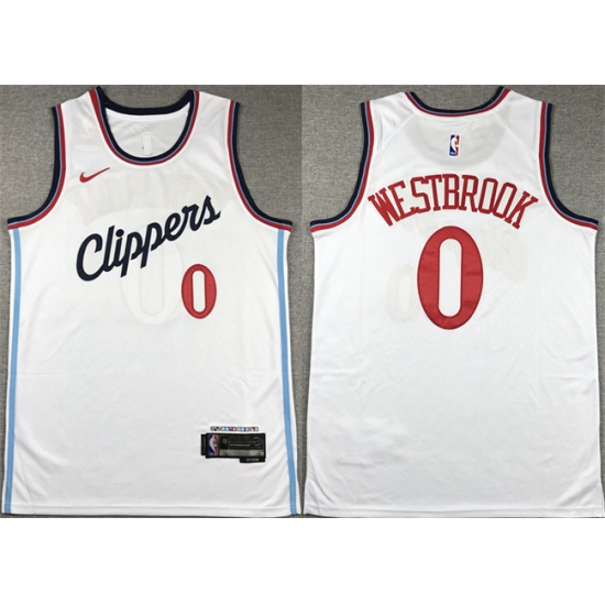Men's Los Angeles Clippers #0 Russell Westbrook White Stitched Jersey