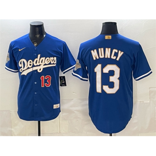 >Men's Los Angeles Dodgers #13 Max Muncy Royal 2026 Alternate Gold Collection Stadium Stitched Baseball Jersey