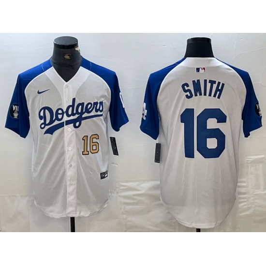 Men's Los Angeles Dodgers #16 Will Smith White Blue Fashion Stitched Cool Base Limited Jerseys