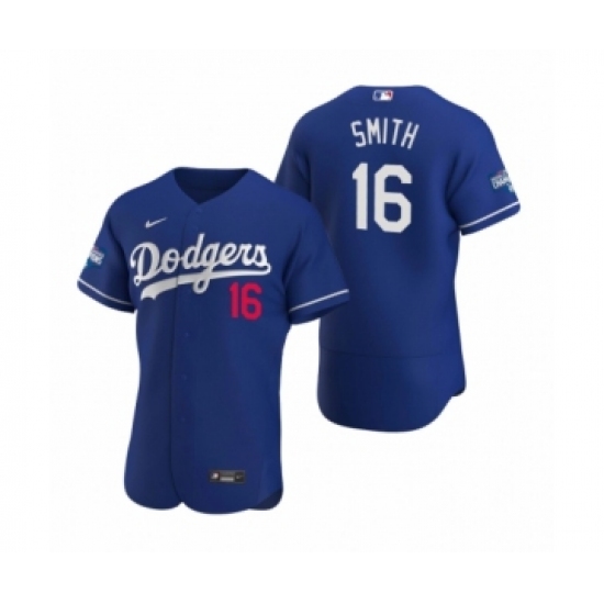 >Men's Los Angeles Dodgers #16 Will Smith Royal 2020 World Series Champions Authentic Jersey