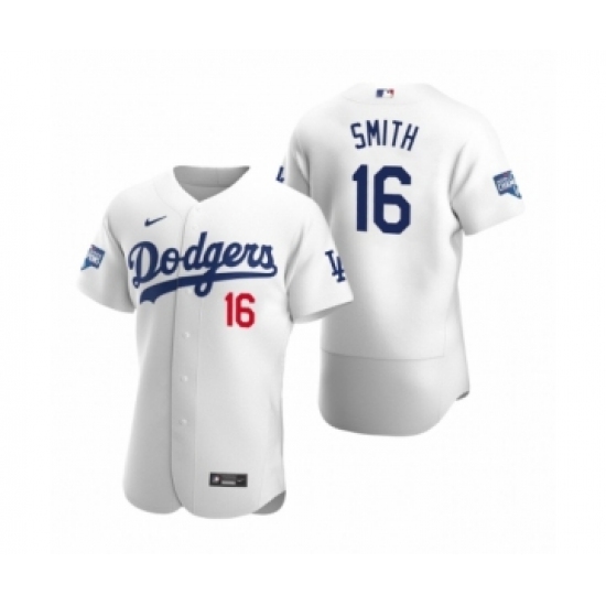 Men's Los Angeles Dodgers #16 Will Smith White 2020 World Series Champions Authentic Jersey