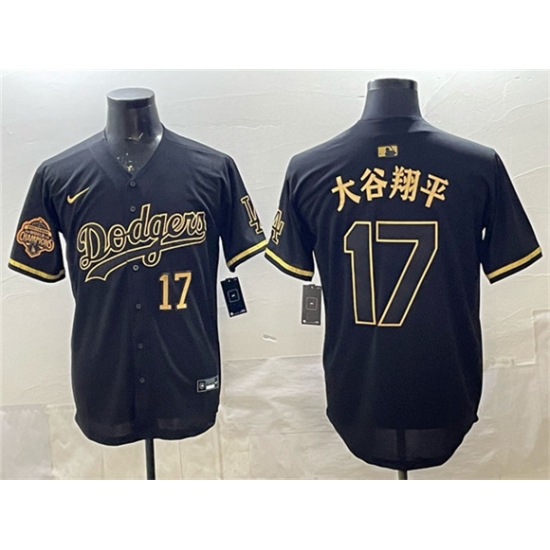 Men's Los Angeles Dodgers #17 大谷翔平 Black Gold 2025 Back to Back Champions Limited Stitched Baseball Jersey