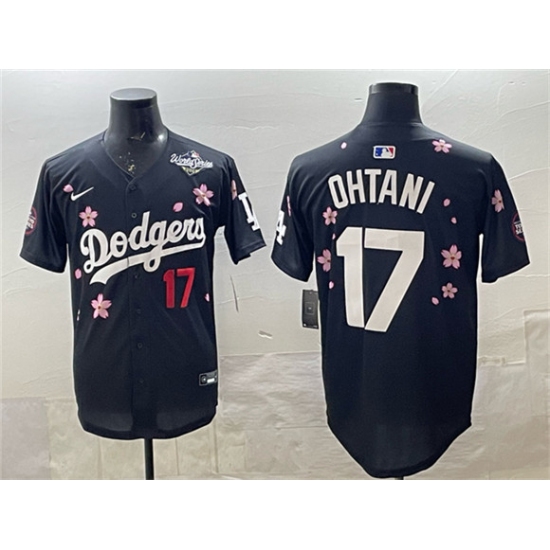 Men's Los Angeles Dodgers #17 Shohei Ohtani Black 2025 World Series Tokyo Series Limited Stitched Baseball Jersey