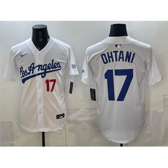 Men's Los Angeles Dodgers #17 Shohei Ohtani White Cool Base Stitched Baseball Jersey