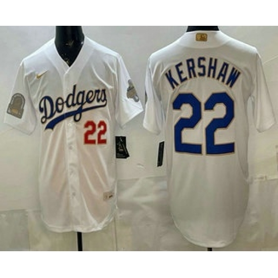 Men's Los Angeles Dodgers #22 Clayton Kershaw White Gold World Series Champions Collection Limited Jersey