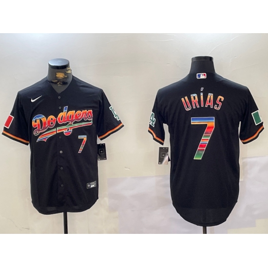 >Men's Los Angeles Dodgers #7 Julio Urias Black Rainbow Mexico Cool Base Stitched Jersey