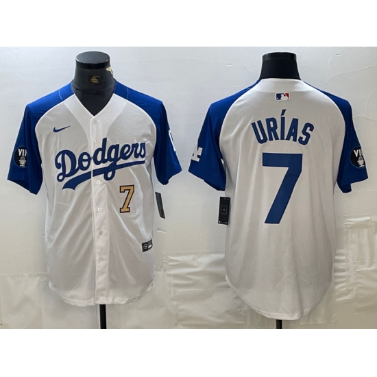 Men's Los Angeles Dodgers #7 Julio Urias Number White Blue Fashion Stitched Cool Base Limited Jersey