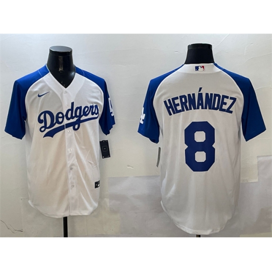 >Men's Los Angeles Dodgers #8 Enrique Hernandez White Blue Cool Base Stitched Baseball Jersey