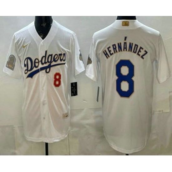 Men's Los Angeles Dodgers #8 Enrique Hernandez White Gold World Series Champions Collection Limited Jersey