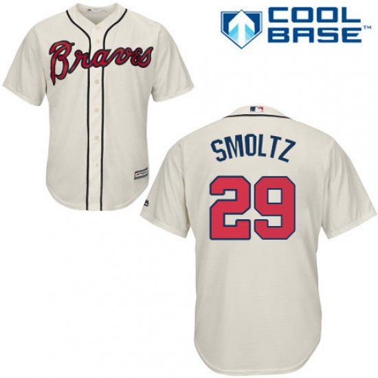 Men's Majestic Atlanta Braves #29 John Smoltz Replica Cream Alternate 2 Cool Base MLB Jersey