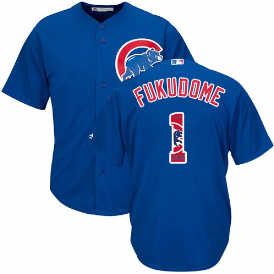 Men's Majestic Chicago Cubs #1 Kosuke Fukudome Authentic Royal Blue Team Logo Fashion Cool Base MLB Jersey