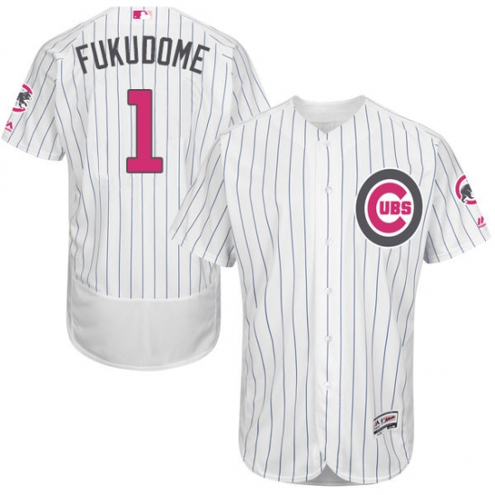 Home>MLB>Chicago Cubs>Kosuke Fukudome>Men's Majestic Chicago Cubs #1 Kosuke Fukudome Authentic White 2016 Mother's Day Fashion Flex Base MLB Jersey