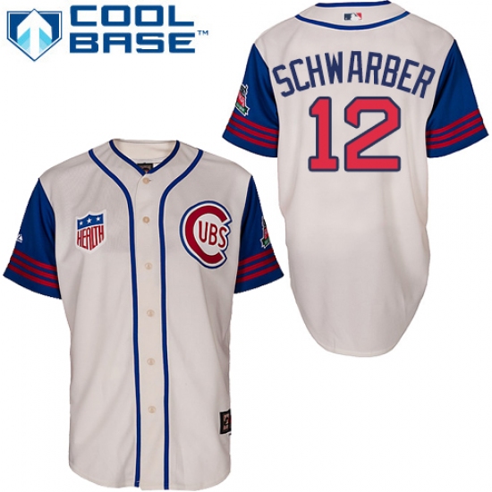 Home>MLB>Chicago Cubs>Kyle Schwarber>Men's Majestic Chicago Cubs #12 Kyle Schwarber Authentic Cream/Blue 1942 Turn Back The Clock MLB Jersey