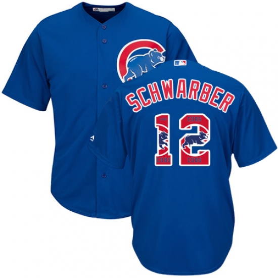 Men's Majestic Chicago Cubs #12 Kyle Schwarber Authentic Royal Blue Team Logo Fashion Cool Base MLB Jersey