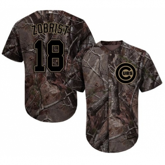 Men's Majestic Chicago Cubs #18 Ben Zobrist Authentic Camo Realtree Collection Flex Base MLB Jersey