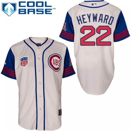 Home>MLB>Chicago Cubs>Jason Heyward>Men's Majestic Chicago Cubs #22 Jason Heyward Authentic Cream/Blue 1942 Turn Back The Clock MLB Jersey