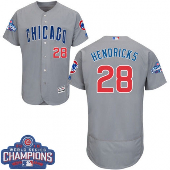 Men's Majestic Chicago Cubs #28 Kyle Hendricks Grey Road 2016 World Series Champions Flexbase Authentic Collection MLB Jersey
