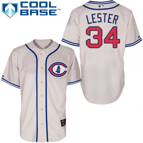 Home>MLB>Chicago Cubs>Jon Lester>Men's Majestic Chicago Cubs #34 Jon Lester Replica Cream 1929 Turn Back The Clock MLB Jersey