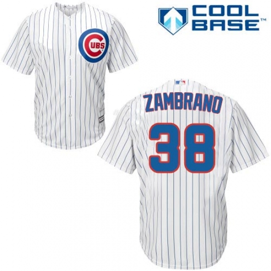 Men's Majestic Chicago Cubs #38 Carlos Zambrano Replica White Home Cool Base MLB Jersey
