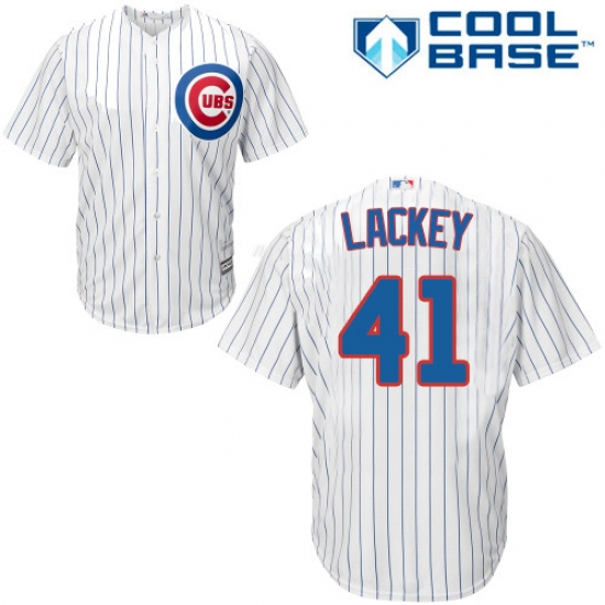 Home>MLB>Chicago Cubs>John Lackey>Men's Majestic Chicago Cubs #41 John Lackey Replica White Home Cool Base MLB Jersey