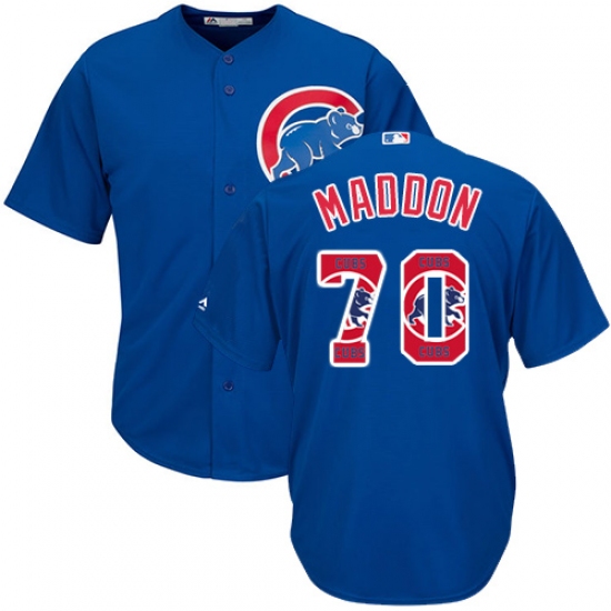 Men's Majestic Chicago Cubs #70 Joe Maddon Authentic Royal Blue Team Logo Fashion Cool Base MLB Jersey