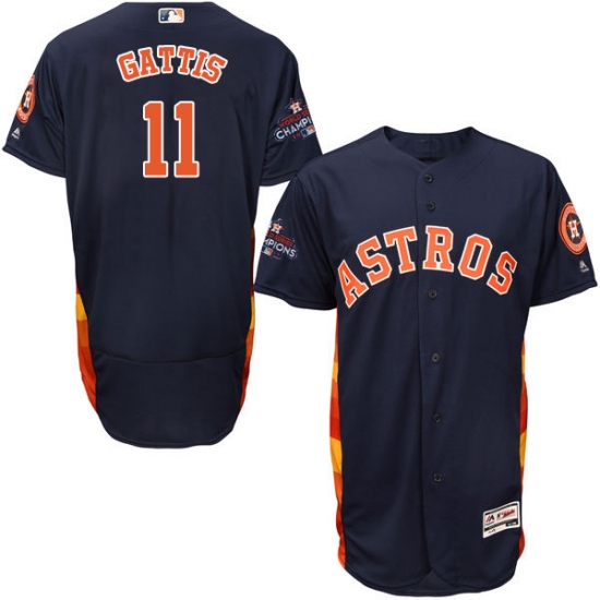 Home>MLB>Houston Astros>Evan Gattis>Men's Majestic Houston Astros #11 Evan Gattis Authentic Navy Blue Alternate 2017 World Series Champions Flex Base MLB Jersey